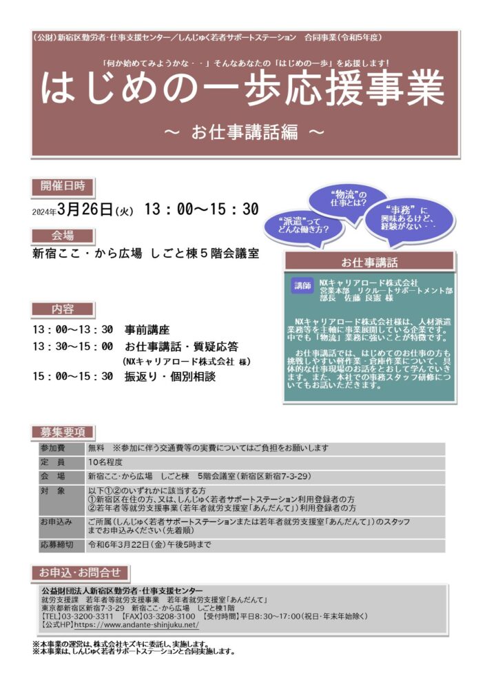 令和5年度はじめの一歩チラシ お仕事講話