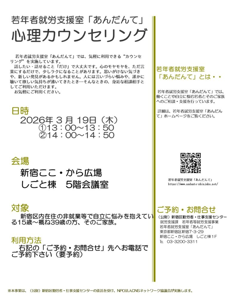 若年者就労支援室「あんだんて」では、気軽に利用できる”カウンセリング”を実施しています。